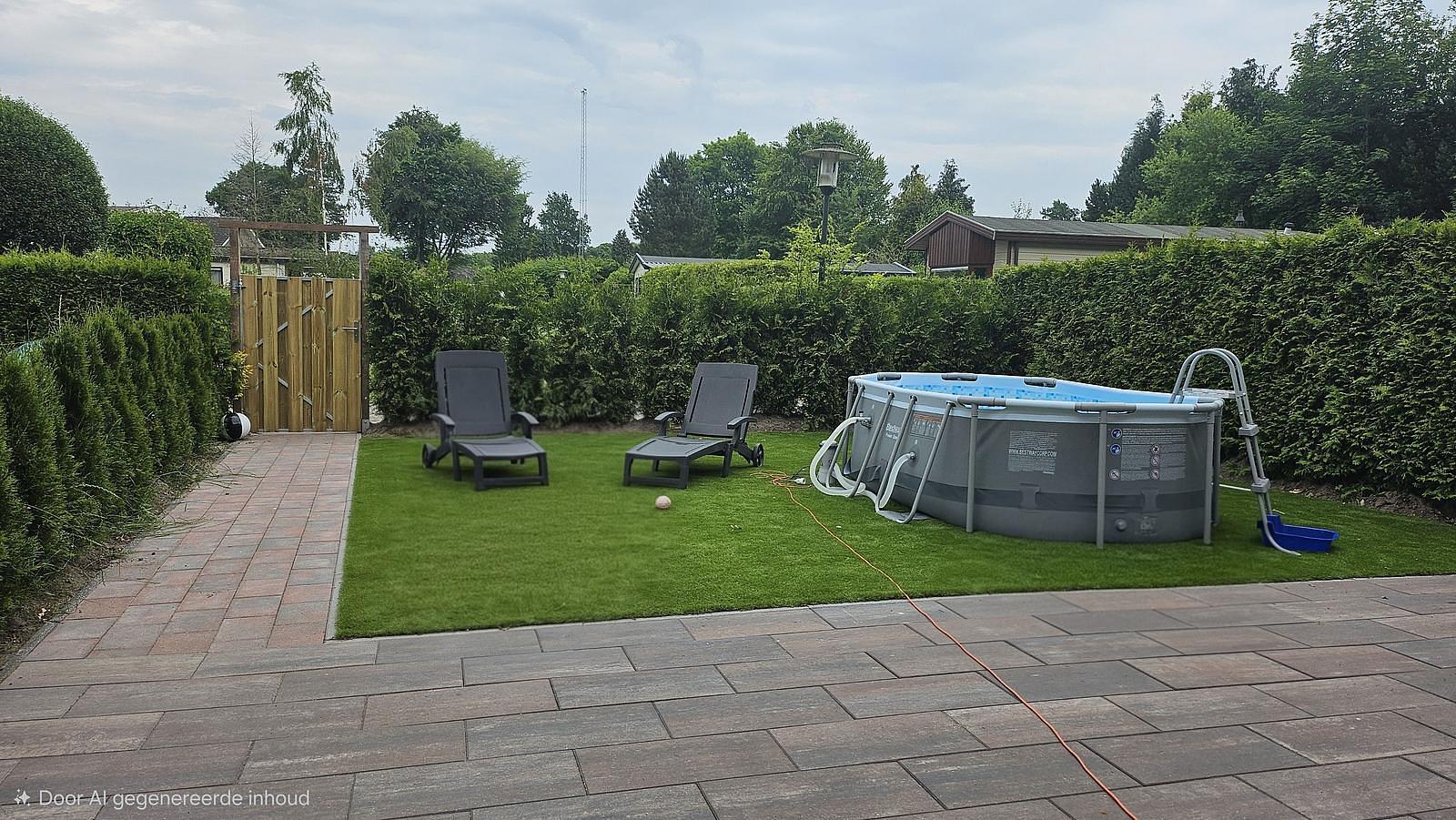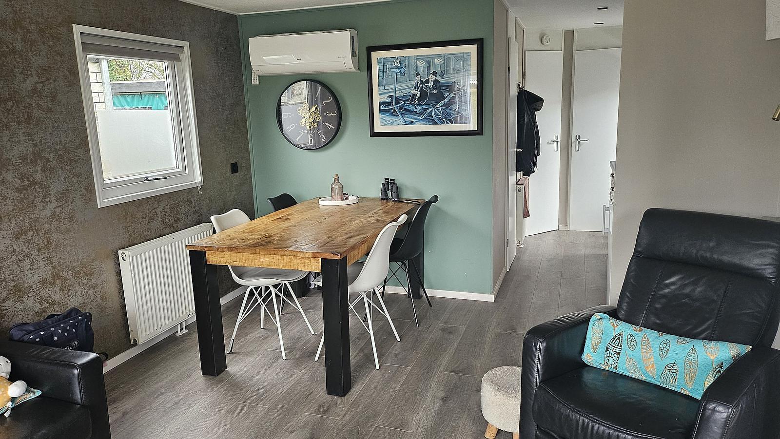 Net vrijstaand chalet van ca. 35 m2 met bouwjaar 2012, met kunststof buitenbekleding en kozijnen. In 2024/2025 voorzien van een veranda, nieuwe badkamer, airco, afzuigkap zonder afvoer met koolstof filter, vloer met extra isolatie, nieuwe spotjes, elektra aansluiting plus kunstgras in de tuin en hordeur in schuifpui.
